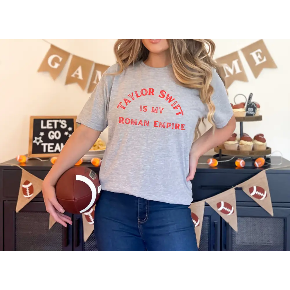 This one's for you, Swifties! Time to represent our Roman Empire. With the announcement of her new Era *and* engagement to Travis, this tee is a must-have have.